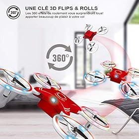 Spaß haben: Ein 360°-Klappschlüssel mit 4 Wegen (links, rechts, vorne, hinten), kontinuierliches Rollen für perfekte Aktion und hervorragende Leistung, was die Drohne leichter zu spielen macht.