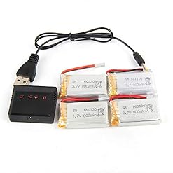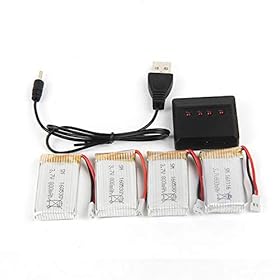 3,7 V 800 mAh Lipo-Akku (4 Stk.) Mit 4-in-1-Ladegerät Kompatibel mit x5c x5sw x5 L15-Drohne