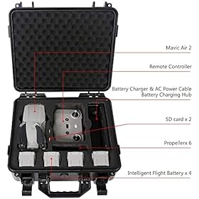 PRECISE CUSTOMIZED-CUT – Entwickelt für 1x DJI Mavic Air 2-Drohne, 4x intelligente Flugbatterien, 1x Fernbedienung, 1x Netzkabel, 1x Batterieladegerät, 6x geräuscharme Propeller (Paar), RC-Kabel (USB Typ C, Blitz) , Standard Micro-USB), 1x Typ-C-Kabel, 1x Kardanschutz, 2x Wippe, 1x ND-Filtersatz (ND16 / 64/256), 1x Batterielade-Hub, 1x Akku-Powerbank-Adapter, 2x SD-Karte usw. Es wäre besser, den Mavic Air 2 und das Zubehör für die Sicherheit im Urlaub oder im Freien zu schützen.