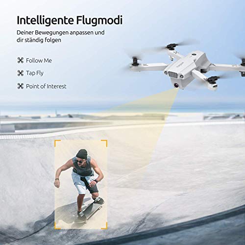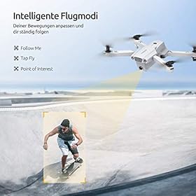 [Upgrade Zahlreiche Intelligente Flugmodi]:✈Kreisbewegung(in einem perfekten Kreis um ein bestimmtes Objekt fliegen) ✈Follow me ✈Waypoint-Modus(mehrere Wegpunkte auf der Karte gesetzt) ✈Automatisch Photographieren mit Gesten ✈Automatisch Abflug/Landung ✈Kopflos Modus Durch einer ganzen Reihe an intelligenten Flugmodi können Sie den Flugspaß in vollen Zügen genießen.