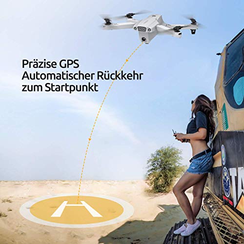[GPS Unterstützter Flug & Return-to-Home-Funktion]: Das fortschrittliche GPS System ermöglicht eine präzise Rückkehr nach Hause und einen super stabilen Flug in der Luft. Bei niedrigem Akkustand oder Signalverlust, oder wenn Sie den One Key Return Button drücken, fliegt die ferngesteuerte Drohne automatisch zum Startpunkt zurück.